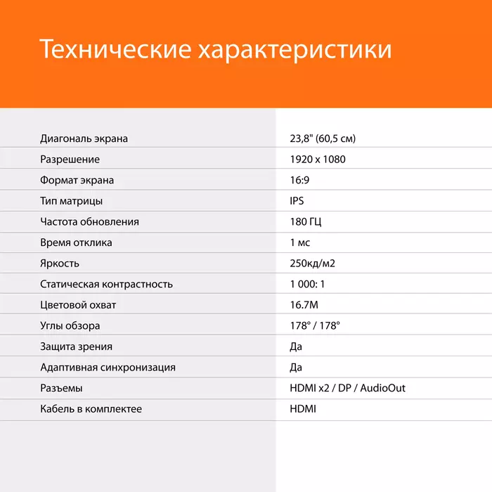 | Диагональ экрана | 23.8" (60.45см) |