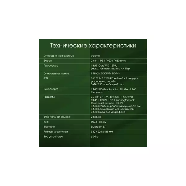 | Процессор | Intel Core i3 1215U 1.2ГГц |