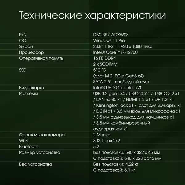 | Процессор | Intel Core i7 12700 2.1ГГц |