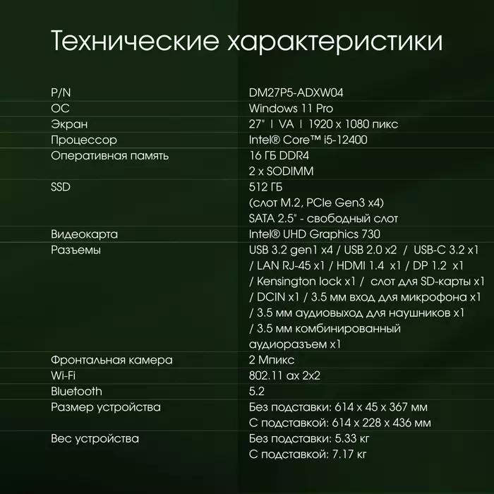 Особенности Digma Pro Unity [DM27P5-ADXW04]