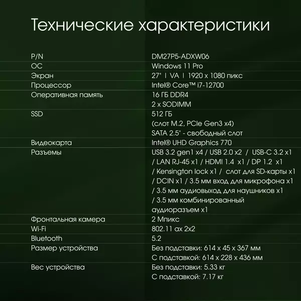 Особенности Digma Pro Unity [DM27P7-ADXW06]