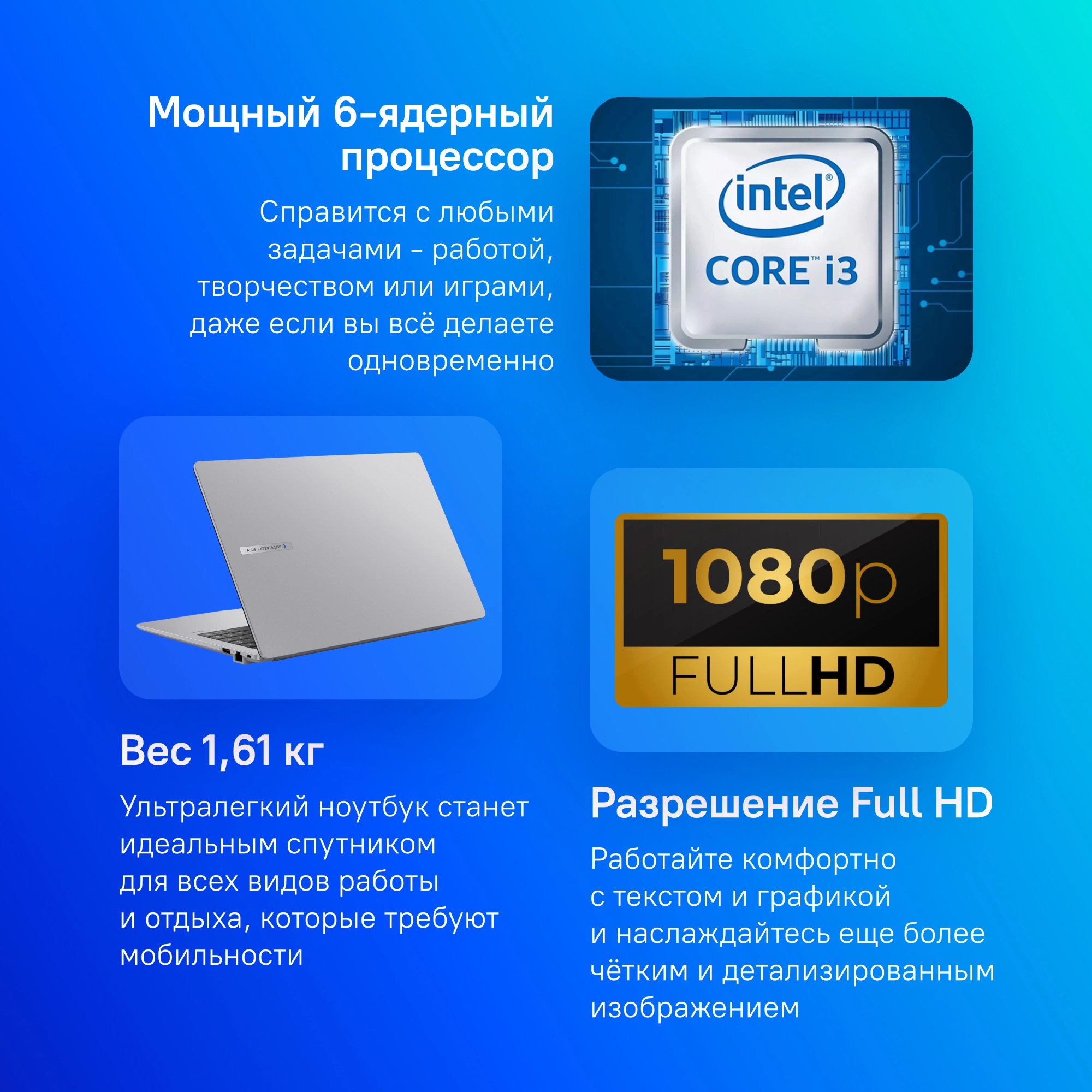 Характеристики Общий объем хранилища SSD 256Gb Основные характеристики Модель P1503CVA-S70347W Год релиза 2024 Тип Ноутбук...