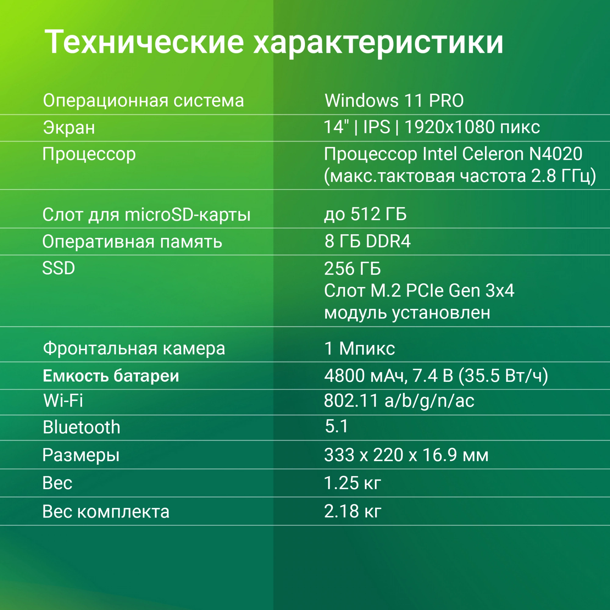 | Процессор | Intel Celeron N4020 1.1ГГц |
