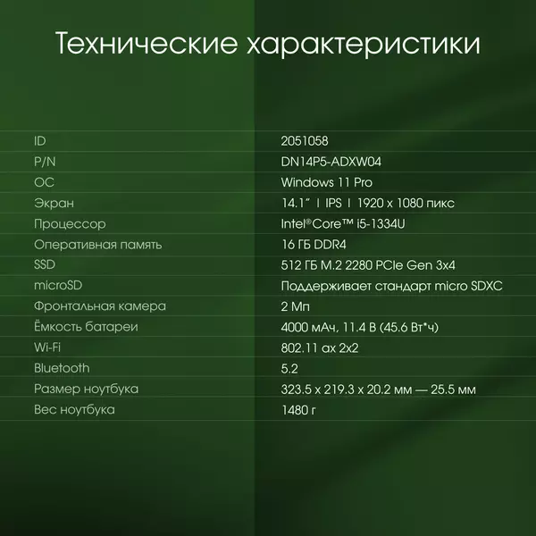 | Процессор | Intel Core i5 1334U 1.3ГГц |