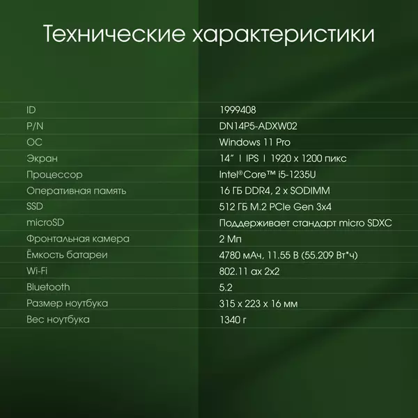 | Процессор | Intel Core i5 1235U 1.3ГГц |