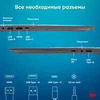 Ноутбук iRU Tactio 16ALB Core i3 1215U 16Gb SSD512Gb Intel UHD Graphics 16" IPS FHD (1920x1080) Windows 11 Pro grey WiFi BT Cam 4830mAh [2110203]