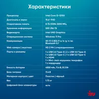 Ноутбук iRU Tactio 15ALG Core i3 1215U 8Gb SSD256Gb Intel UHD Graphics 15.6" IPS FHD (1920x1080) Windows 11 Professional 64 black WiFi BT Cam 4500mAh [2019263]