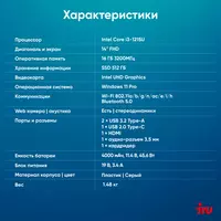Ноутбук iRU Tactio 14ALH Core i3 1215U 16Gb SSD512Gb Intel UHD Graphics 14" IPS FHD (1920x1080) Windows 11 Pro Multi Language 64 grey WiFi BT Cam 4000mAh [2059060]