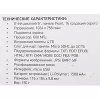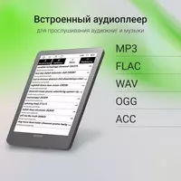 | Подержка форматов книг | EPUB, PDF, MOBI, DJVU, FB2, DOC, DOCX, HTML, RTF, TXT, CHM |