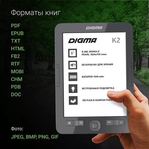 | Подержка форматов книг | PDF, EPUB, TXT, HTML, FB2, RTF, MOBI, CHM, PDB, DOC |