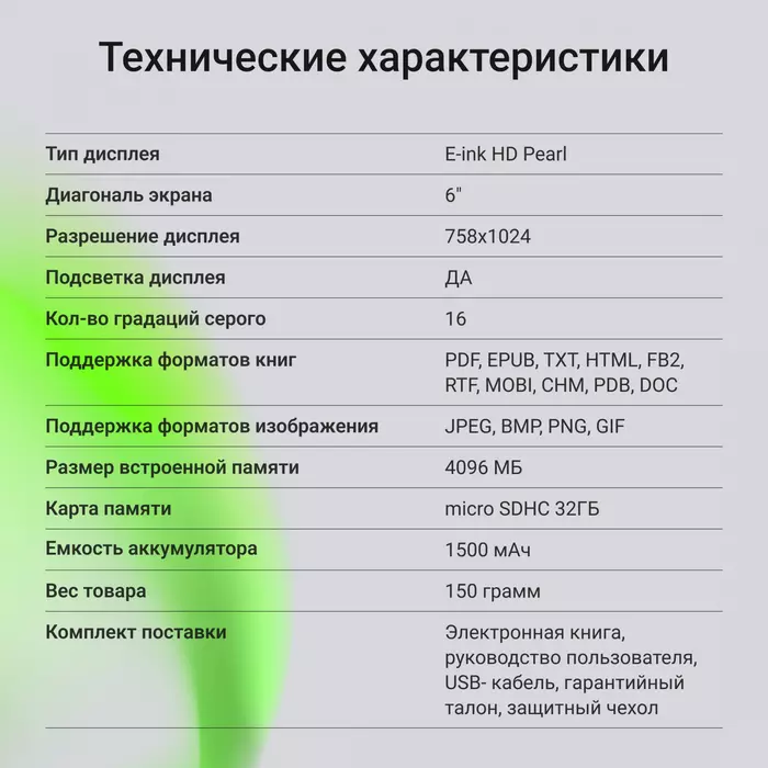 | Подержка форматов книг | PDF, EPUB, TXT, HTML, FB2, RTF, MOBI, CHM, PDB, DOC |
