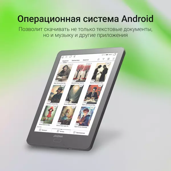 | Подержка форматов книг | EPUB, PDF, MOBI, DJVU, FB2, DOC, DOCX, HTML, RTF, TXT, CHM |