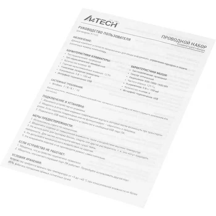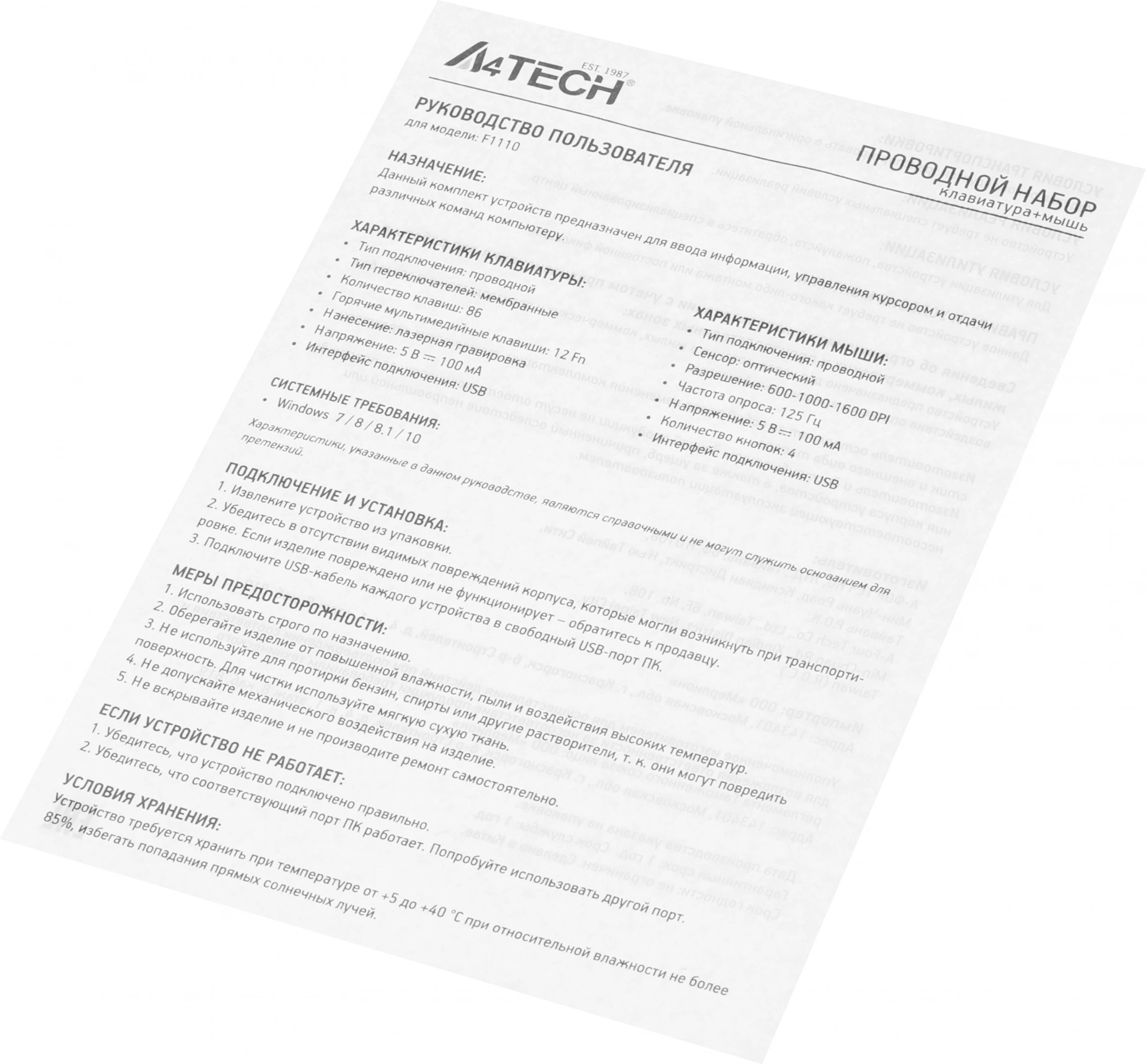 Наличие товара A4-Tech Fstyler F1110 GREY