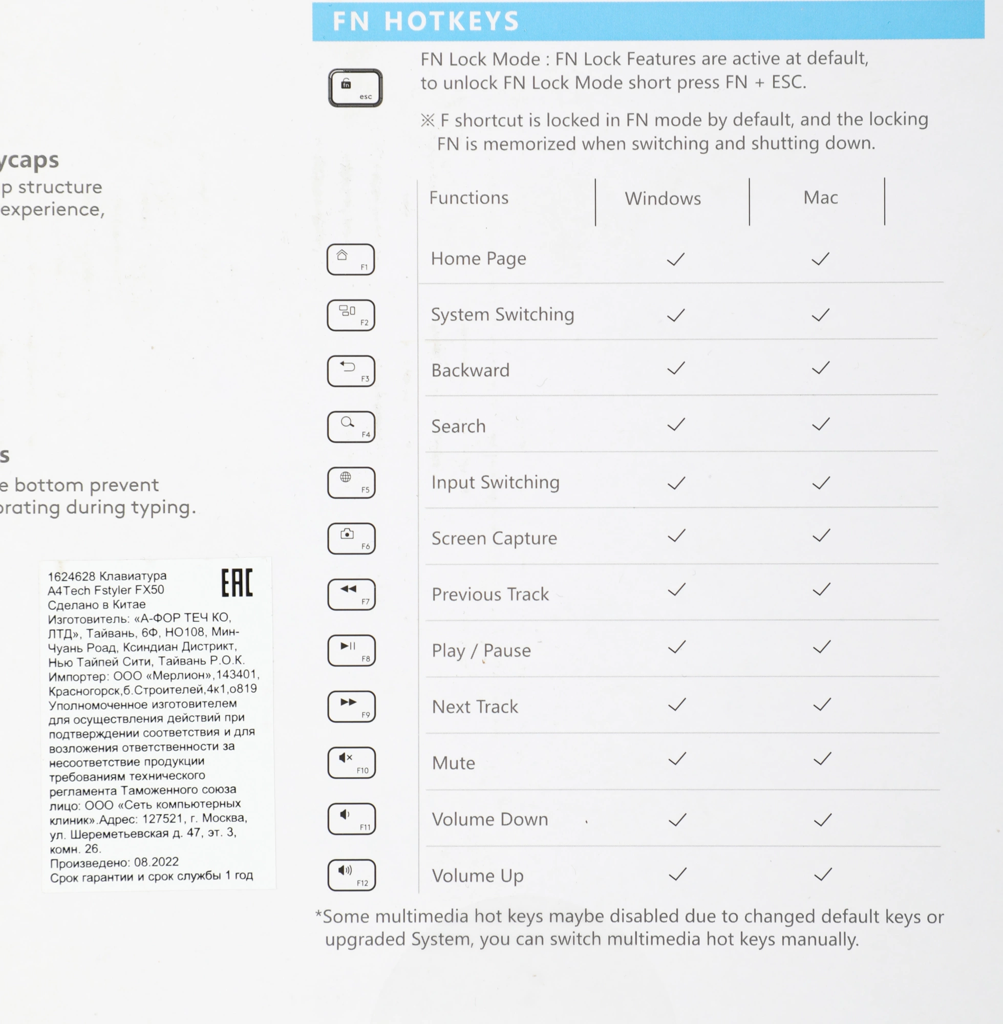 Наличие товара A4-Tech Fstyler FX50 GREY