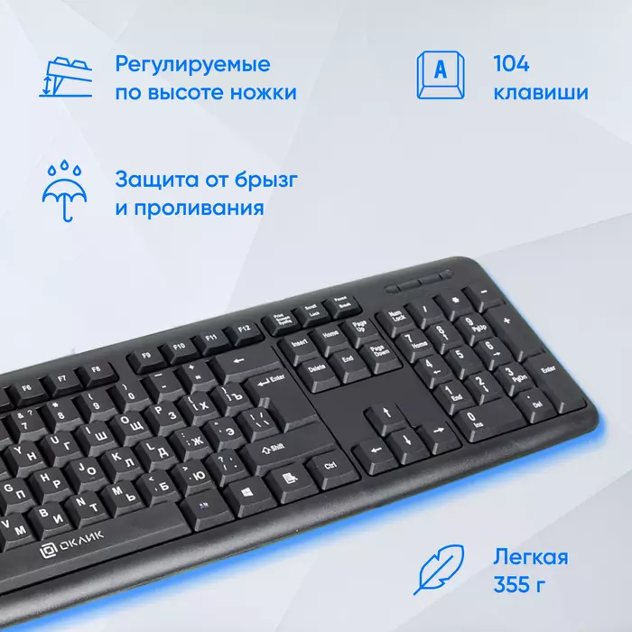 | Особенности | Универсальная офисная клавиатура с длинным кабелем 2 м |