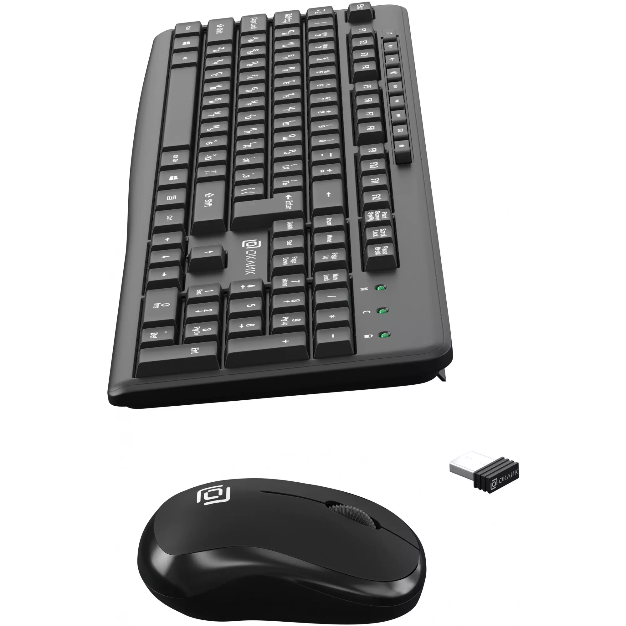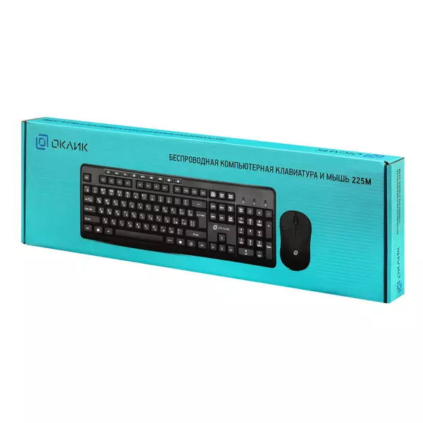 Комплект поставкиБеспроводная компьютерная клавиатура и мышь 225M, батарейки, USB-ресивер