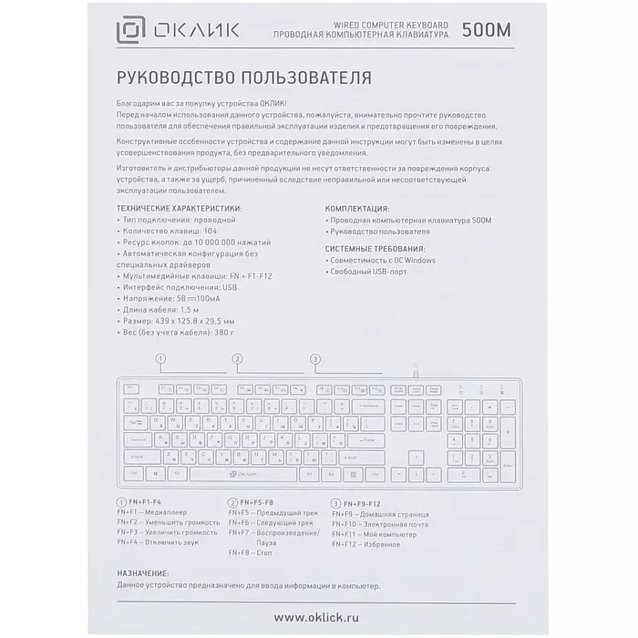 | Особенности | Клавиатура slim-дизайна с клавишами островного типа с мультимедийными функциями |