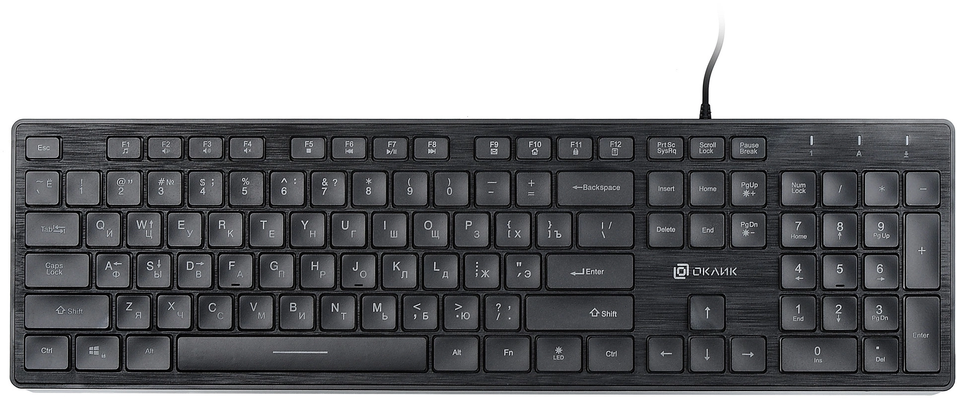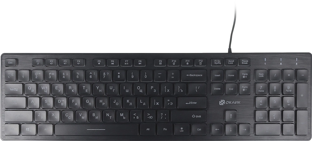 | Особенности | Клавиатура slim-дизайна с клавишами островного типа с мультимедийными функциями, управление подсветкой, возможность блокировки клавиши windows Пуск, лазерная гравировка шрифта |