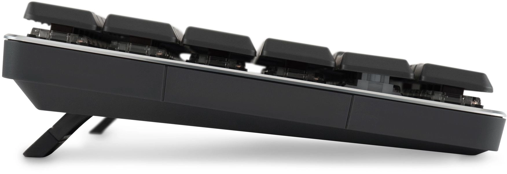 | Особенности | Ресурс нажатий: до 50 000 000, короткие линейные свитчи, многоцветная LED-подсветка, выдвижные ножки, прочный алюминиевый корпус. |
