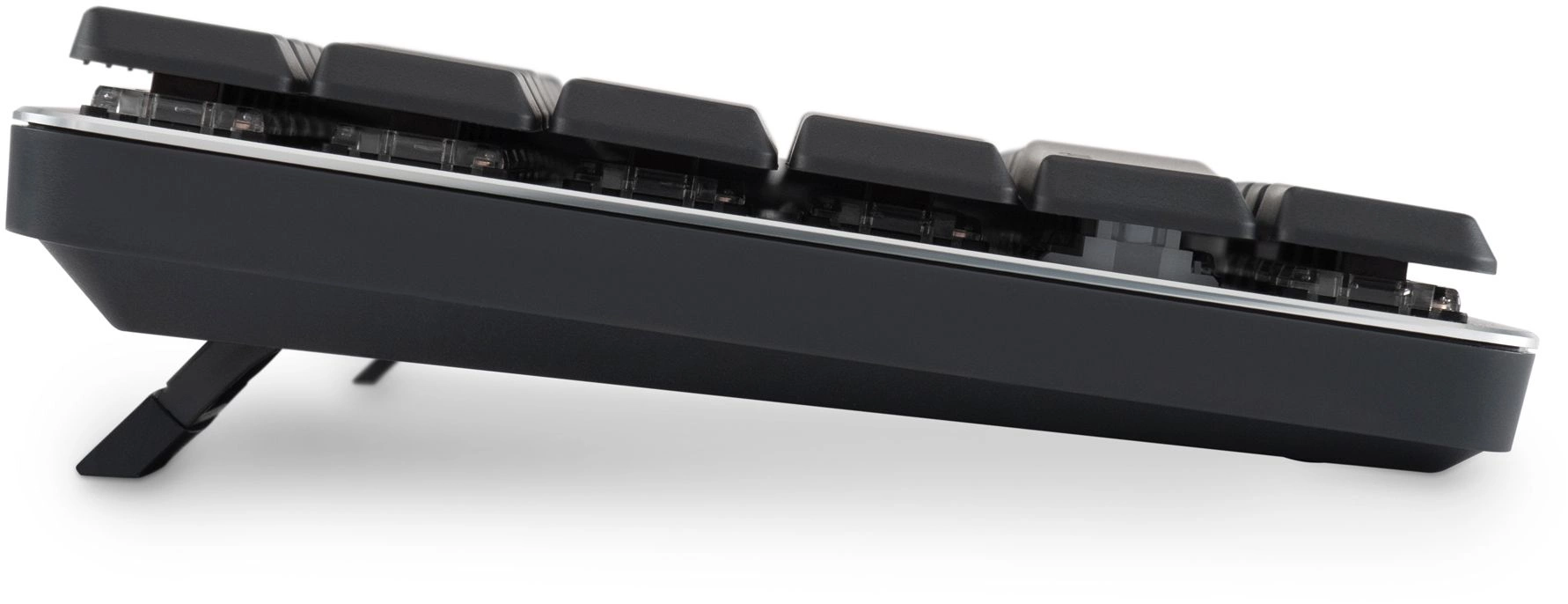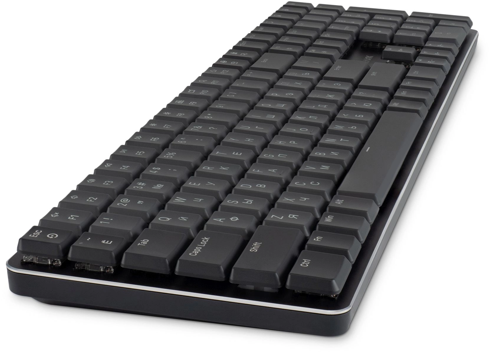 | Особенности | Низкопрофильная механическая клавиатура на переключателях коричневого цвета. Стильное решение для выполнения офисных задач и надежный девайс для игровых баталий. Тактильные переключатели обеспечивают четкое срабатывание клавиш с приятной обратной связью. Ресурс нажатий 50000000 кликов. |