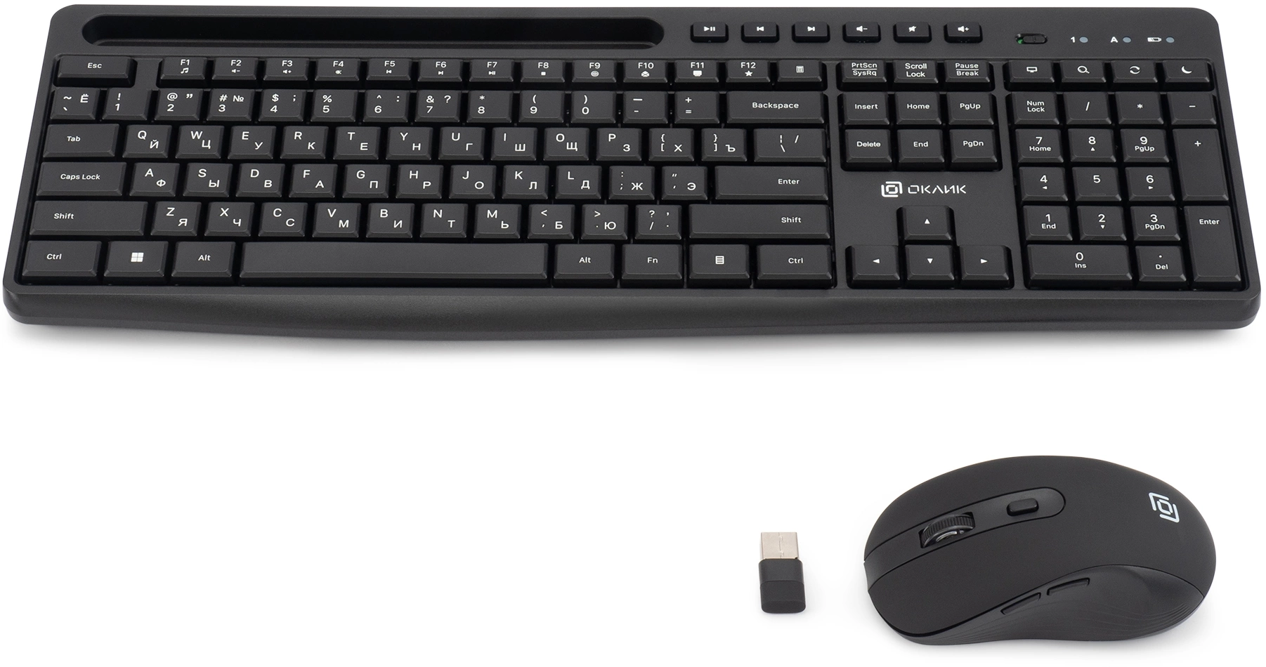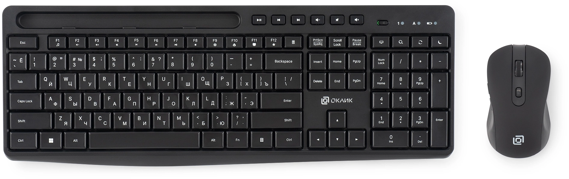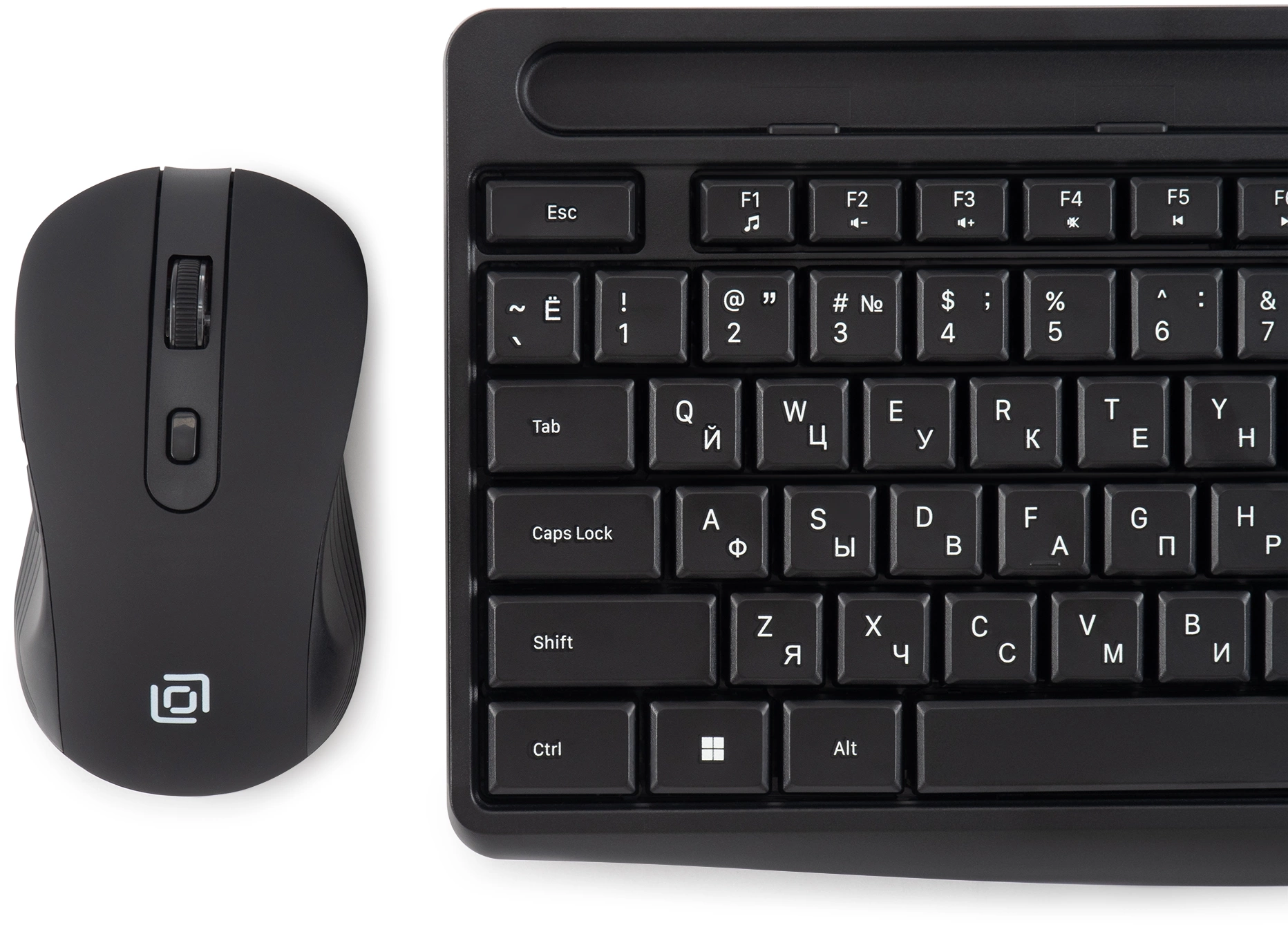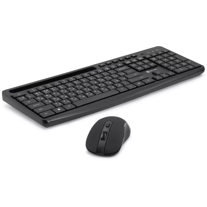 | Особенности комплекта | Бесшумный офисный комплект с дополнительными клавишами клавиатуры и беспроводным подключением. Размер холдера для размещения мобильных устройств: 21,5 см x 1,5 см. |