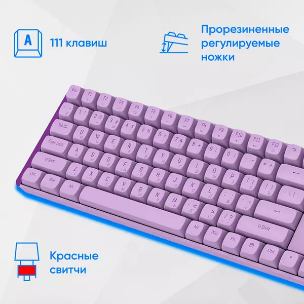 | Особенности клавиатуры | Флагманский офисный комплект клавиатуры и мыши. Клавиатура механического типа дарит тактильно-приятные ощущения во время печати текста, отдаленно сравнимые с работой на хорошей печатной машинке. Дополнительный комфорт обеспечивает UV покрытие клавиш клавиатуры и мыши. |