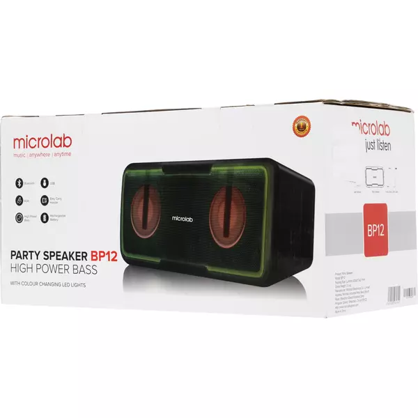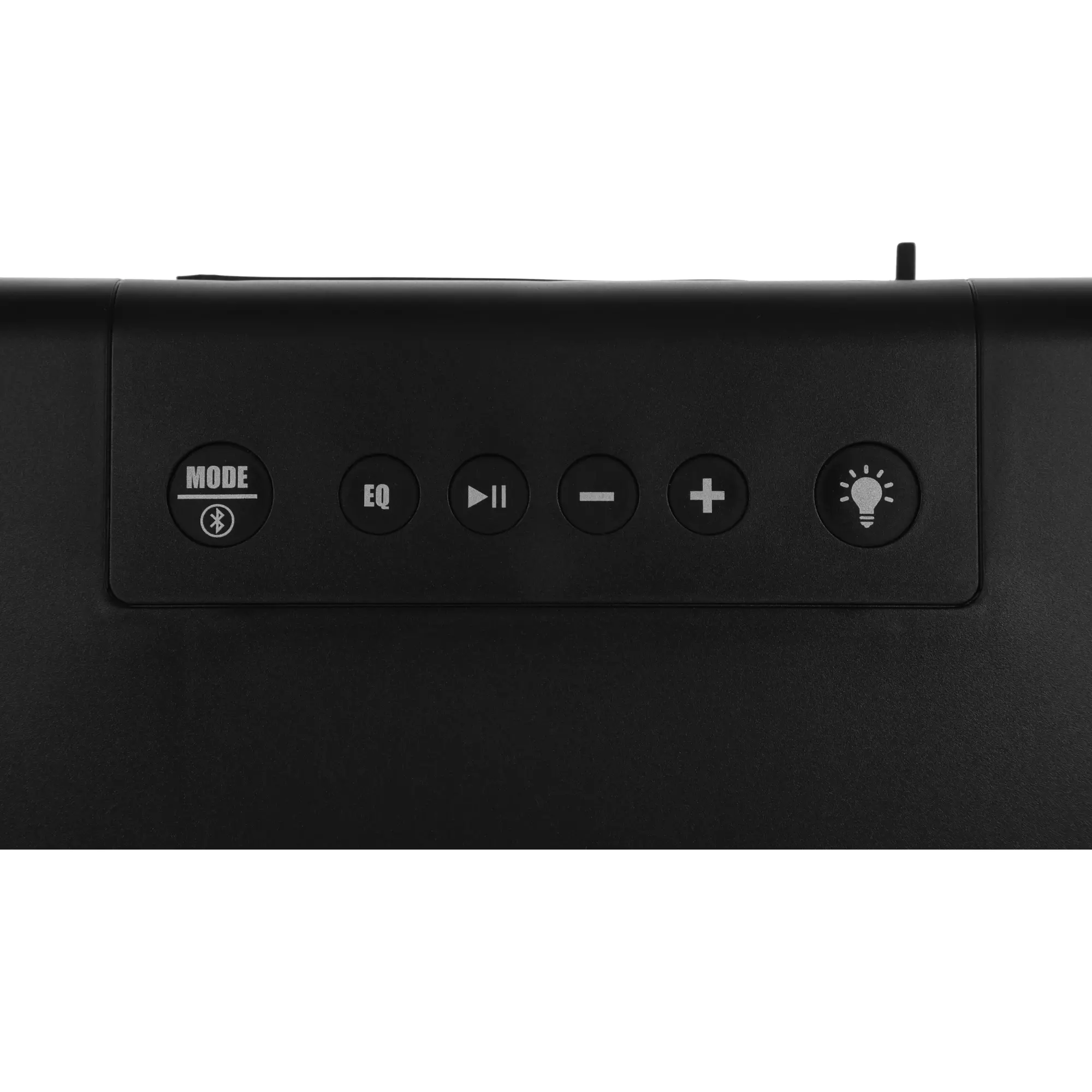 | Особенности | Bluetooth, линейный входа, USB.Вход для микрофонаГлубокий бас5 режимов эквалайзера, звуковые эффекты.7ми цветная LED подсветкаВстроенная литиевая батареяРучка для переноски |