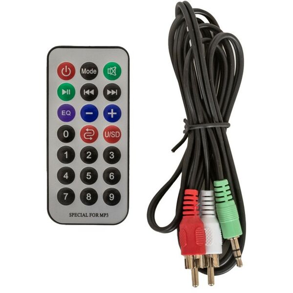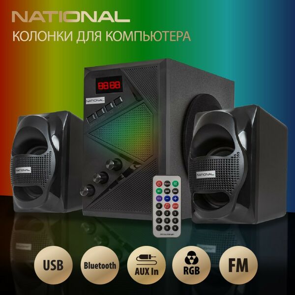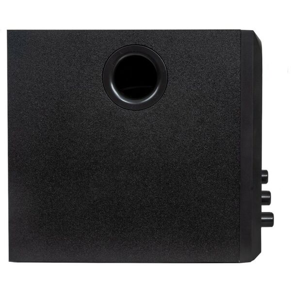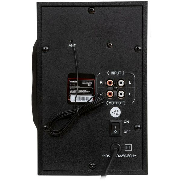 - Активный сабвуфер с кабелем питания, пассивные боковые колонки с соединительными кабелями, пульт, гарантийный талон, инструкция на русском языке