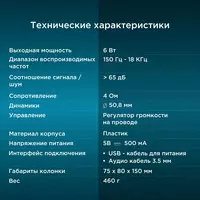 Характеристики Основные характеристики Тип акустики стационарная Акустический тип 2.0 Суммарная звуковая мощность 6 Вт Частотный...