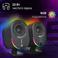Основные характеристики Компьютерные колонки 2.0 Цвет: черный, серебристый Подсветка: Есть; RGB Сопротивление: 2 Ома Длина кабеля: 1.3 метра Диапазон...