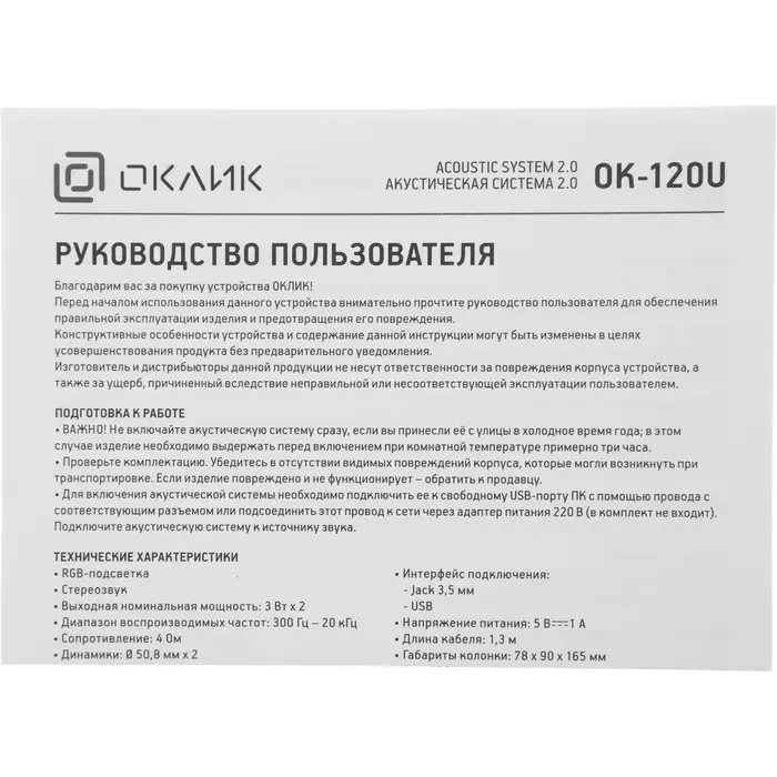 Описание Oklick OK-120U