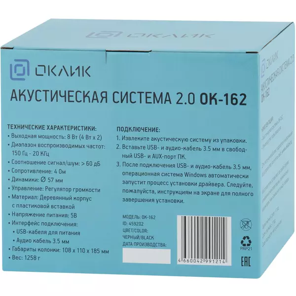 Колонки Oklick OK-162 2.0 черный 8Вт [459202]