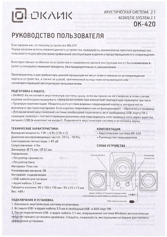 | Фронтальные колонки (мощность одного динамика) | 3 Вт |