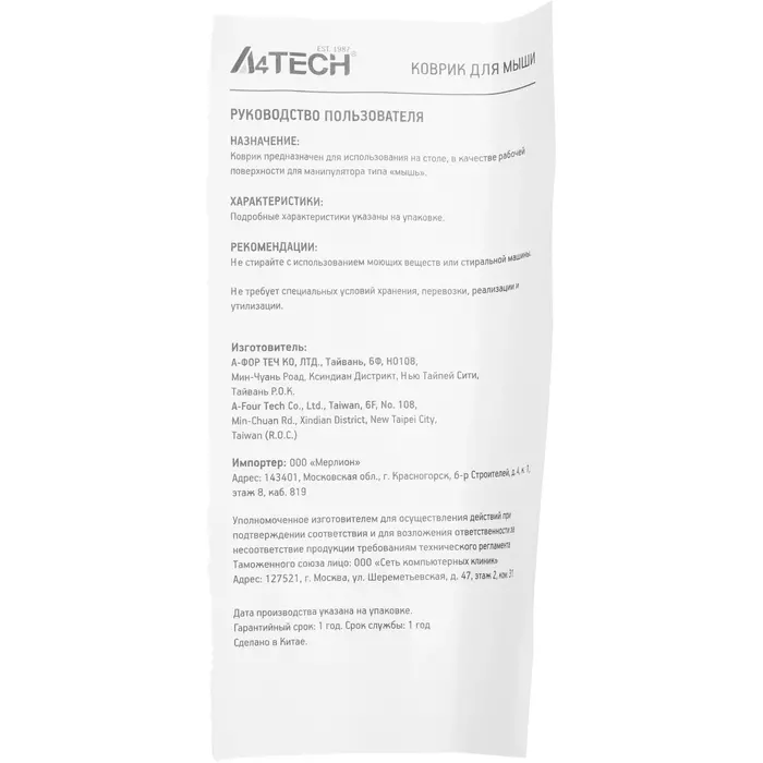 | Срок гарантии | 12 мес. |