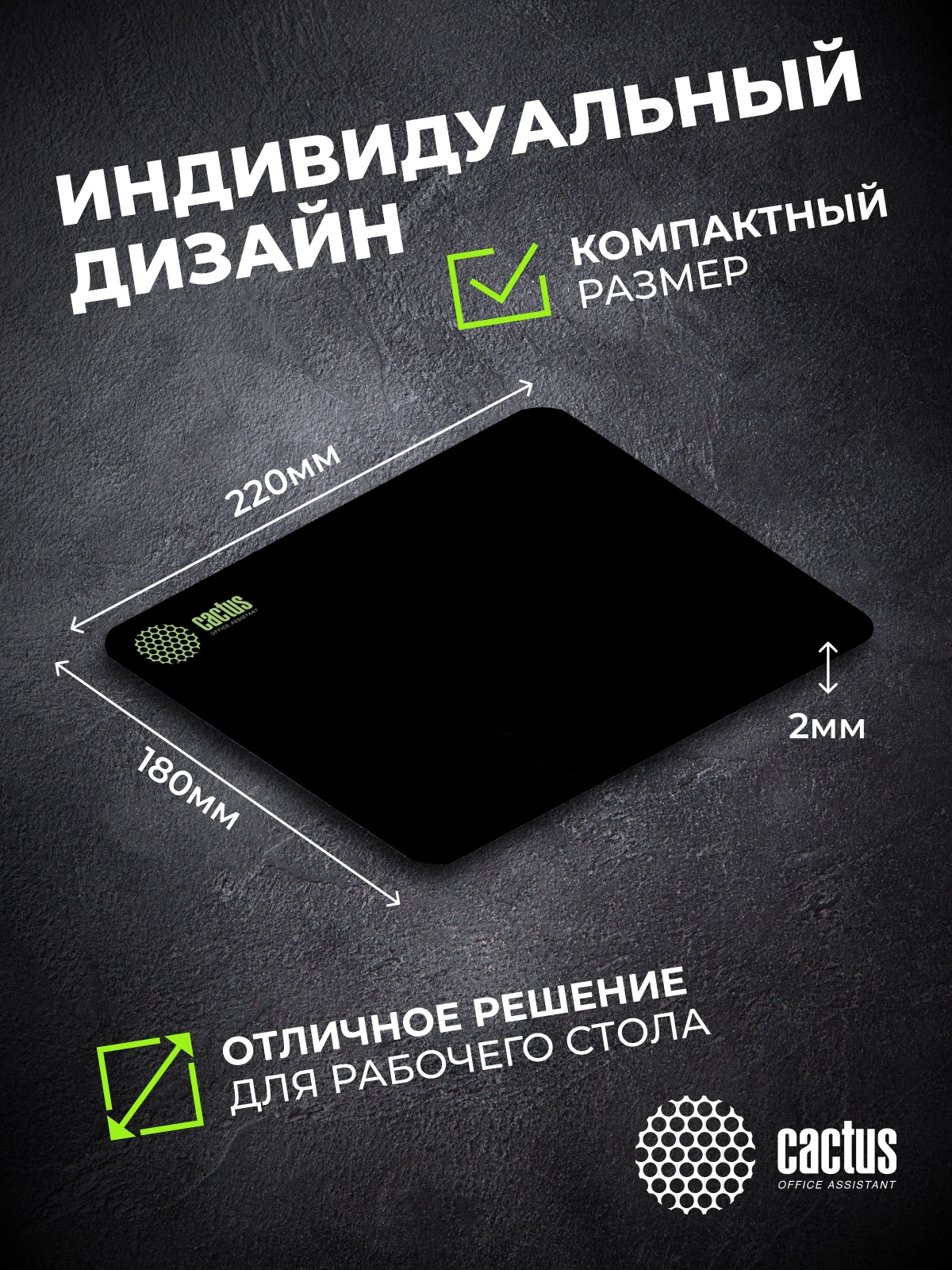 Коврик для мыши Cactus Black черный 220x180x2мм [CS-MPC-P01XS]