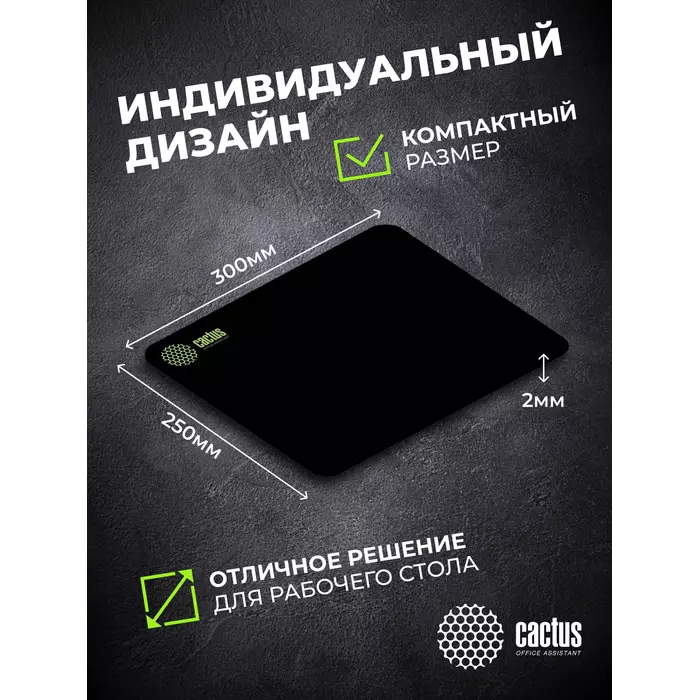Коврик для мыши Cactus Cactus Black черный 300x250x2мм [CS-MPC-P01M]