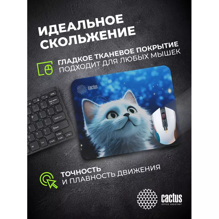 Коврик для мыши Cactus Cactus White Cat 220x180x2мм [CS-MPC-P06XS]