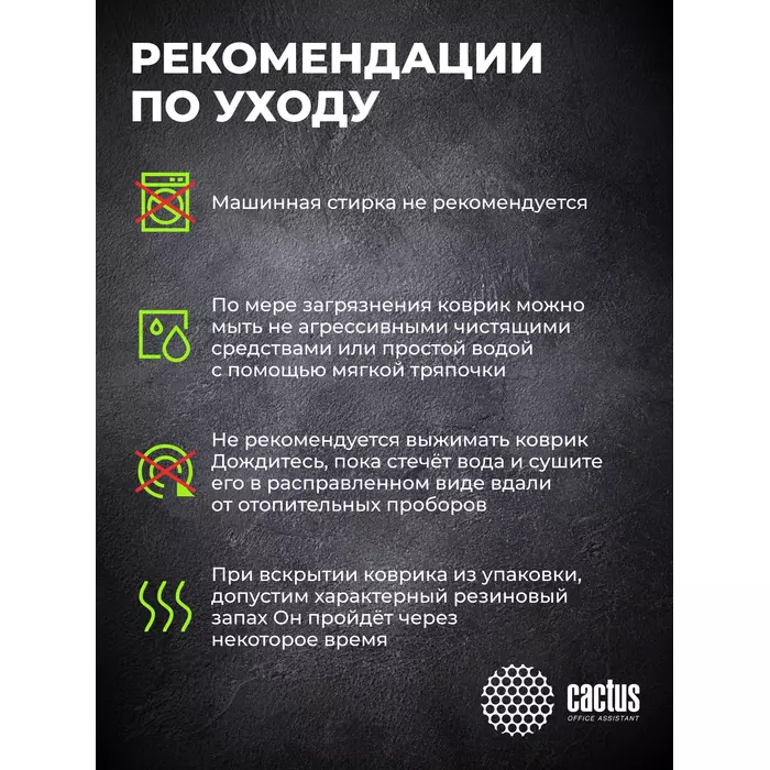 Характеристики Материал ткань Материал основы резина Нескользящая основа Да Срок гарантии 12 мес.
