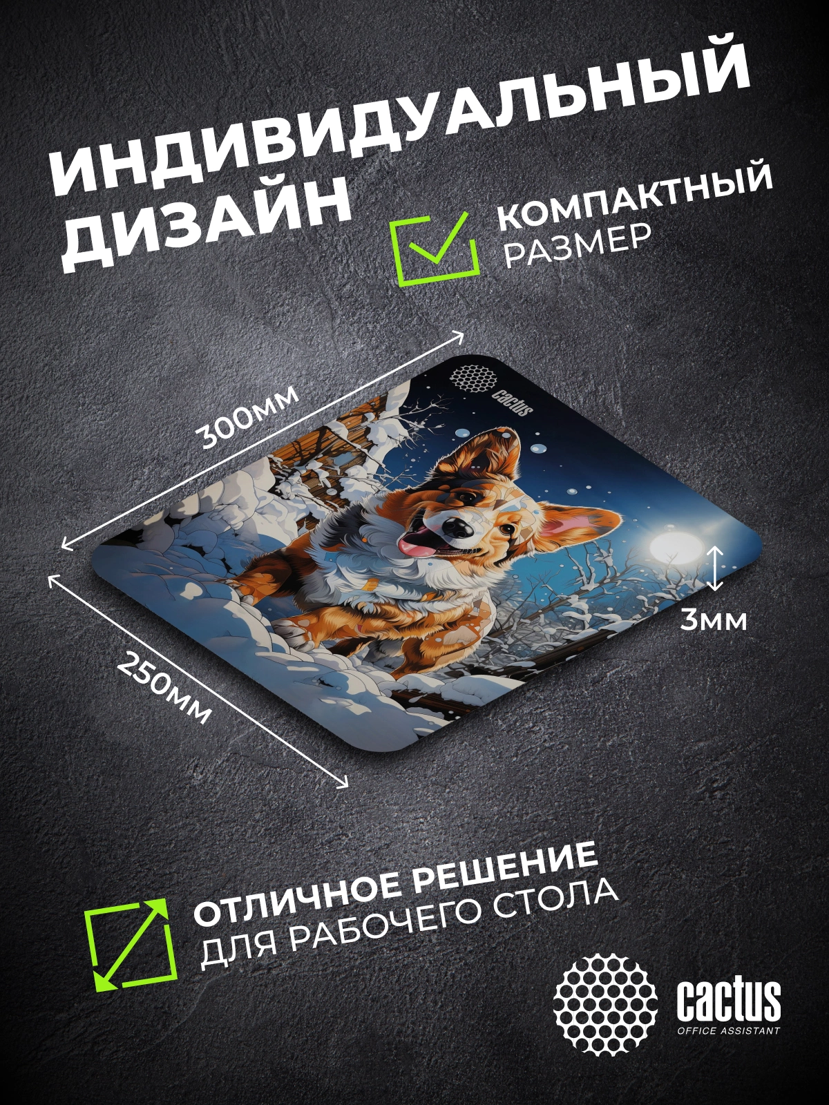 Коврик для мыши Cactus Corgi рисунок 300x250x3мм [CS-MP-D13M]