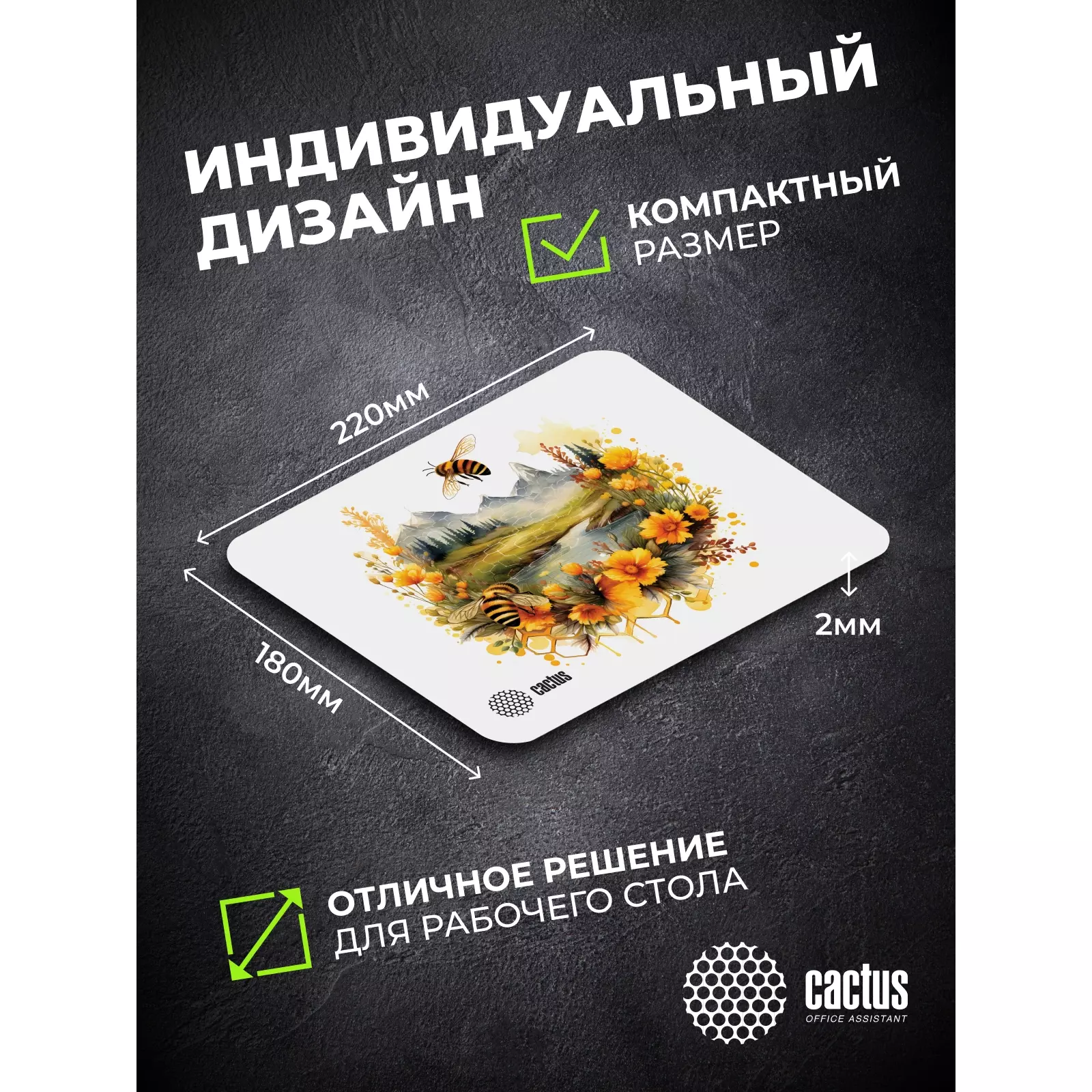 Коврик для мыши Cactus Honeybee 220x180x2мм [CS-MP-P09XS]