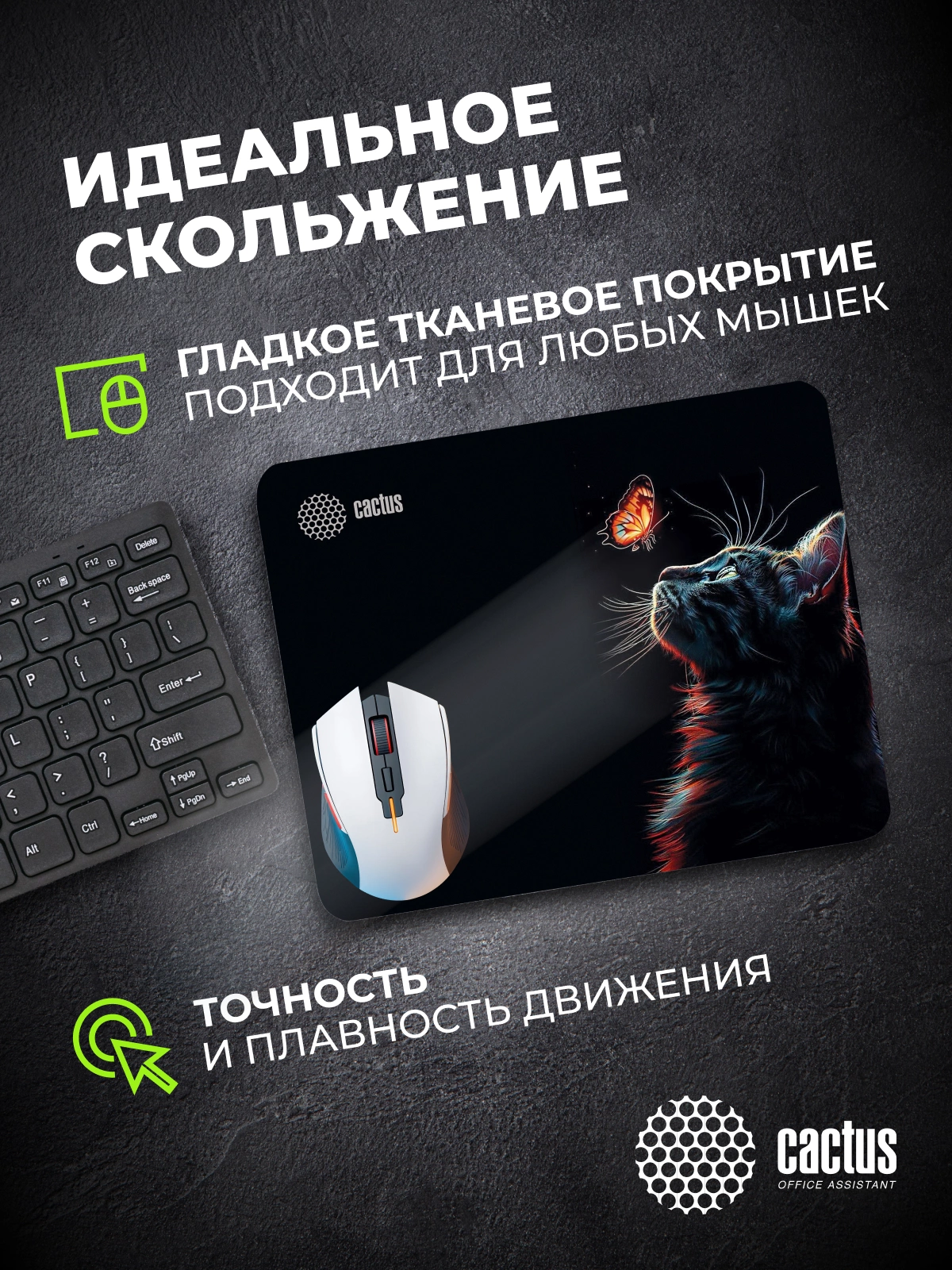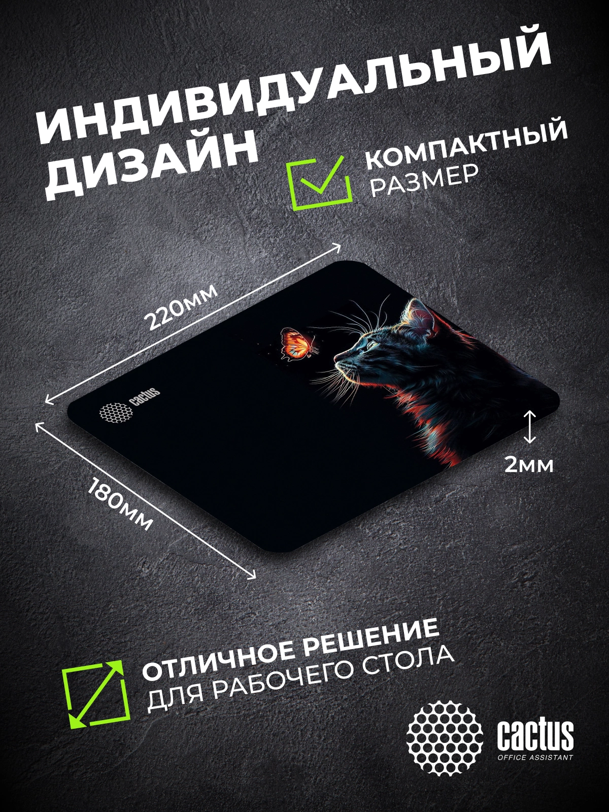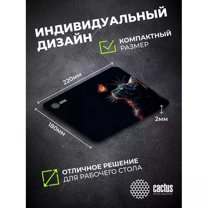 Коврик для мыши Cactus Night Cat 220x180x2мм [CS-MP-P12XS]