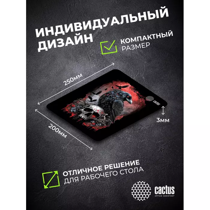 Коврик для мыши Cactus Raven 250x200x3мм [CS-MP-D14S]