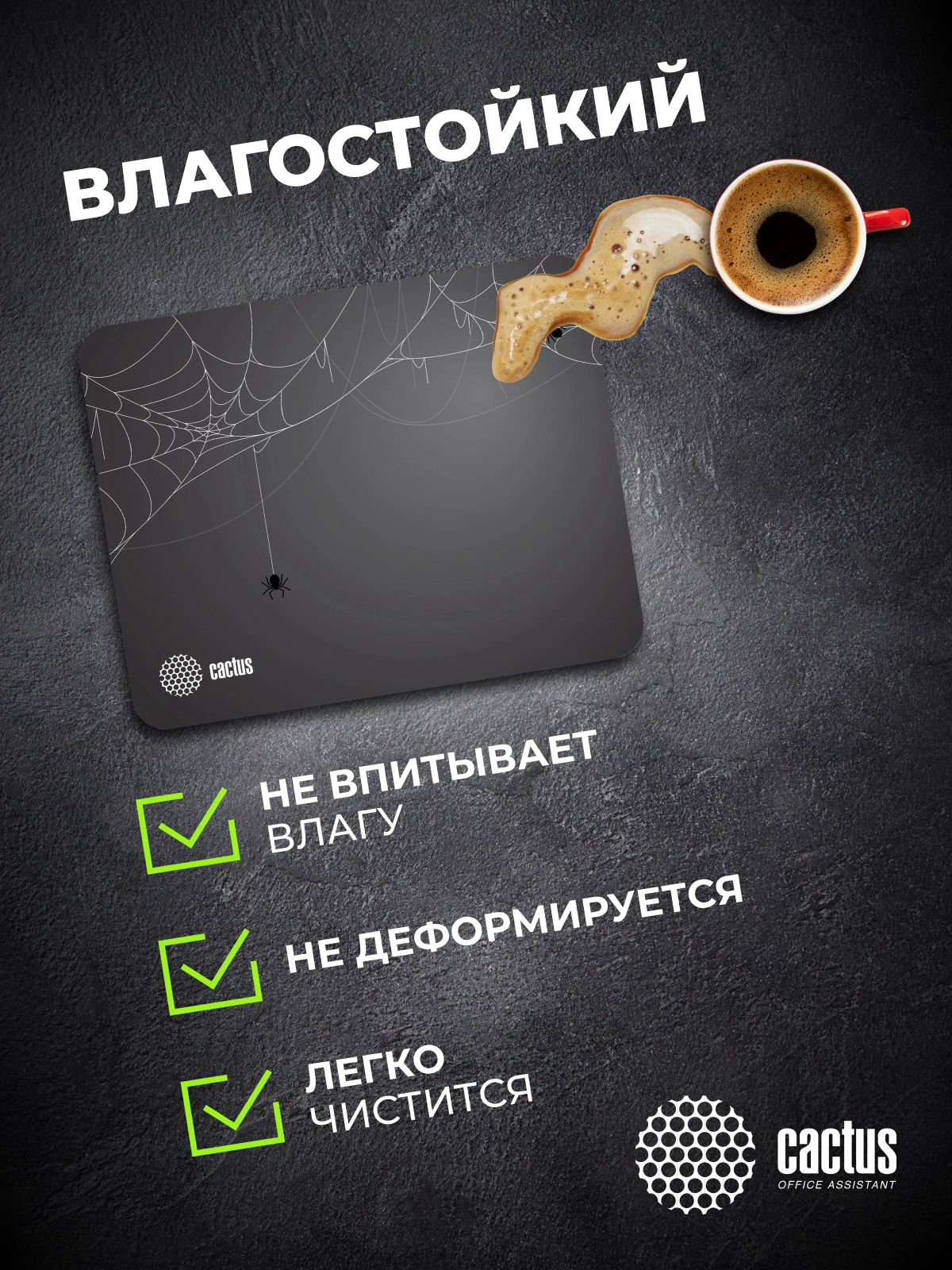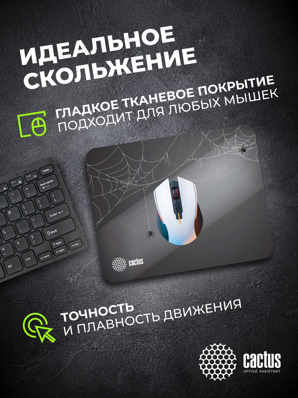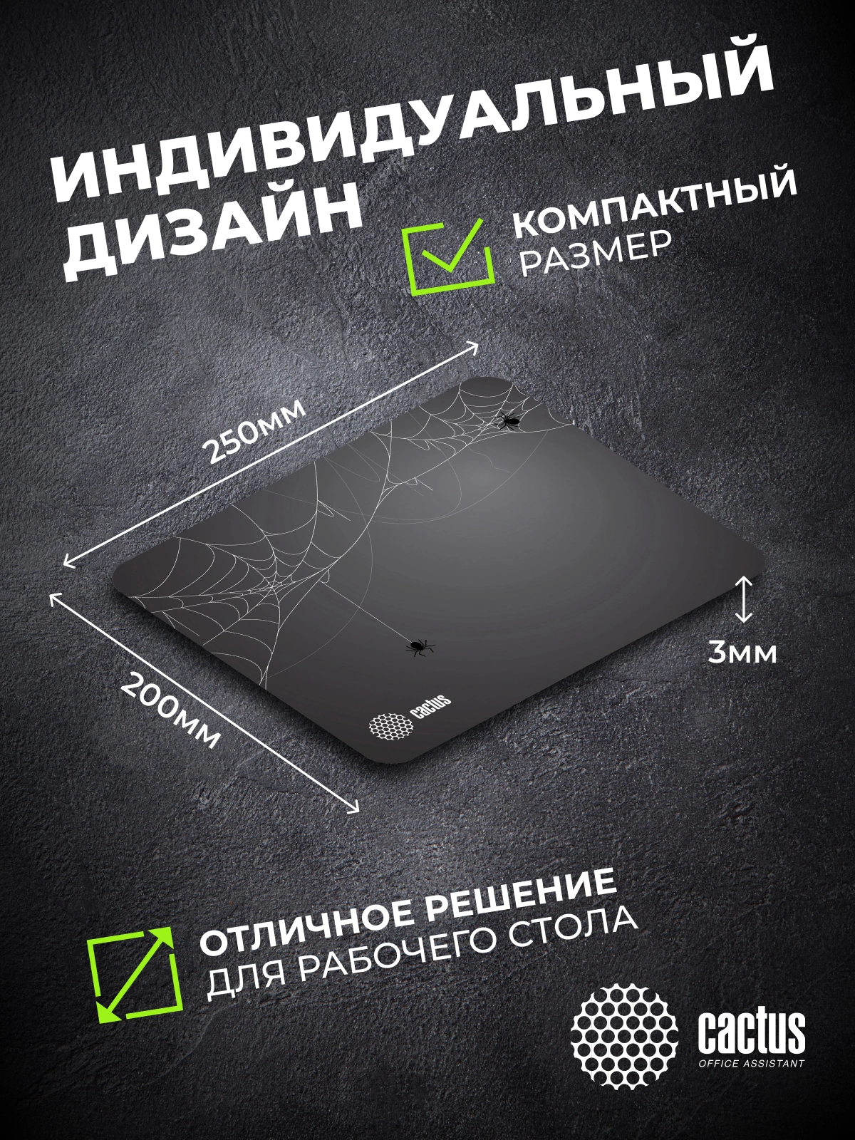 Коврик для мыши Cactus Spider gray черный 250x200x3мм [CS-MP-D13S]