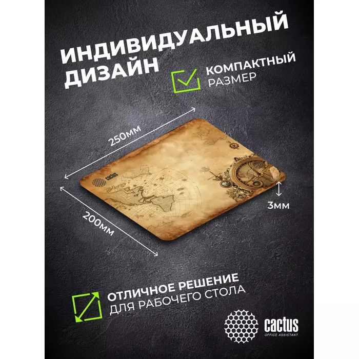 Коврик для мыши Cactus Vintage map 250x200x3мм [CS-MP-D10S]