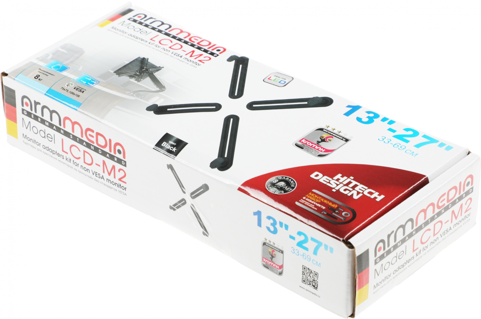 Комплект адаптеров для крепления мониторов на кронштейн без стандартов VESA Устанавливаются на любые VESA пластины со стандартами крепления 75х75 мм и 100х100 мм. Подходит для мониторов с толщиной корпуса от 26,5 мм до 65 мм и диагональю экрана от 13 до 27 дюймов