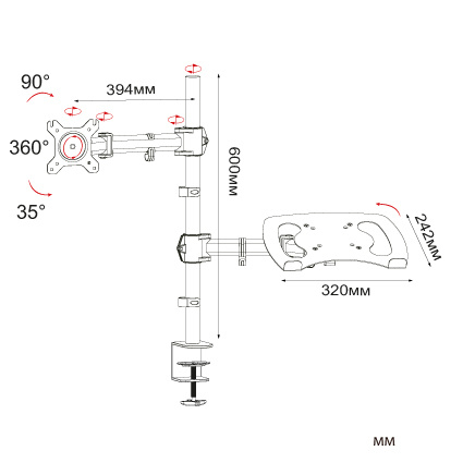 | Подходит для мониторов c диагональю | 15", 19", 22", 26" |