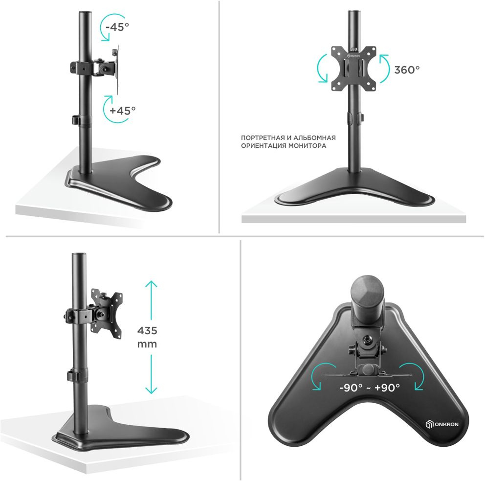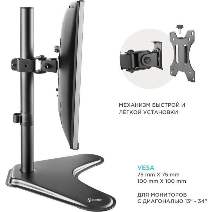 Настольный кронштейн ONKRON D101FS подходит для мониторов диагональю от 13 до 34 дюймов и весом до 8 кг.