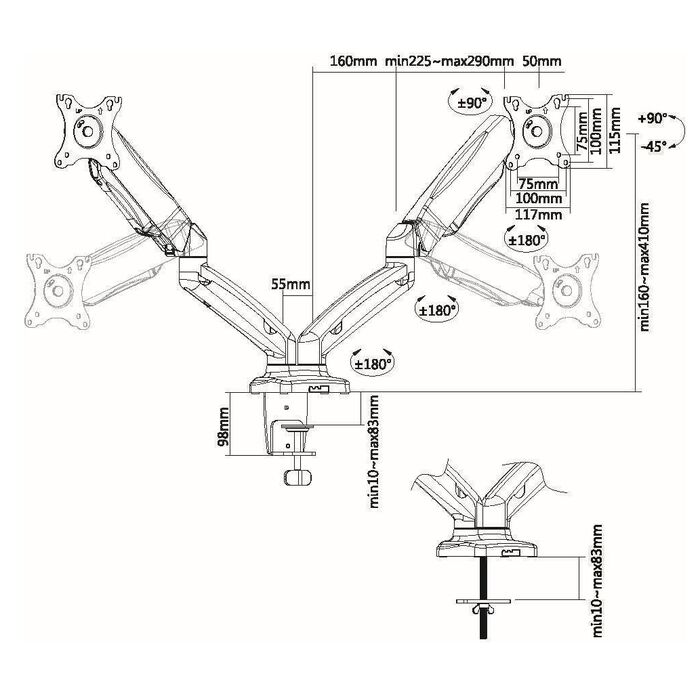 | Угол наклона | +90/-45 ° |