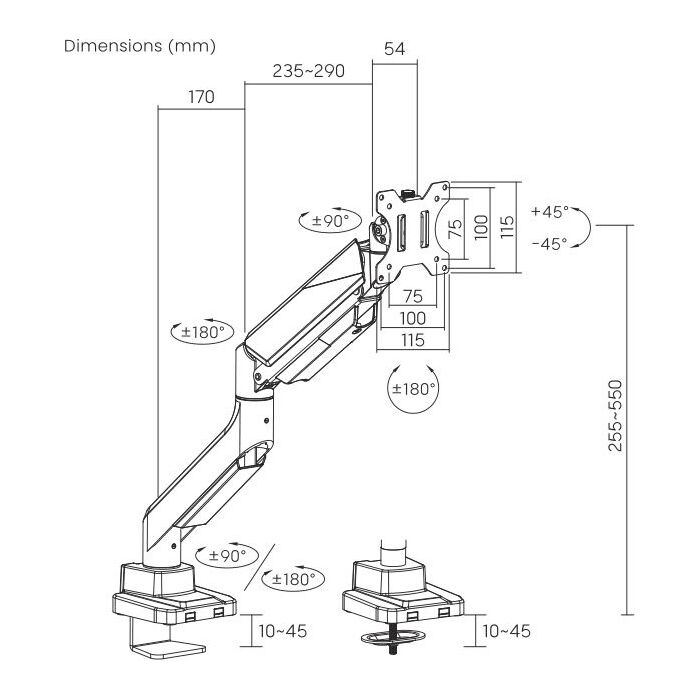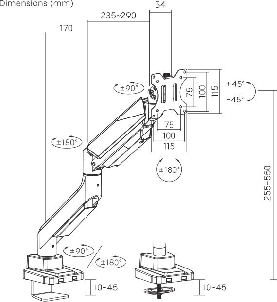 | Особенности | Настольный кронштейн для монитора с системой газ-лифт. |