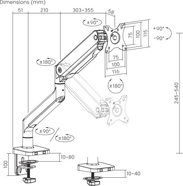 Кронштейн для мониторов Ultramounts UM730 черный 17"-45" макс.16кг крепление к столешнице поворот и наклон